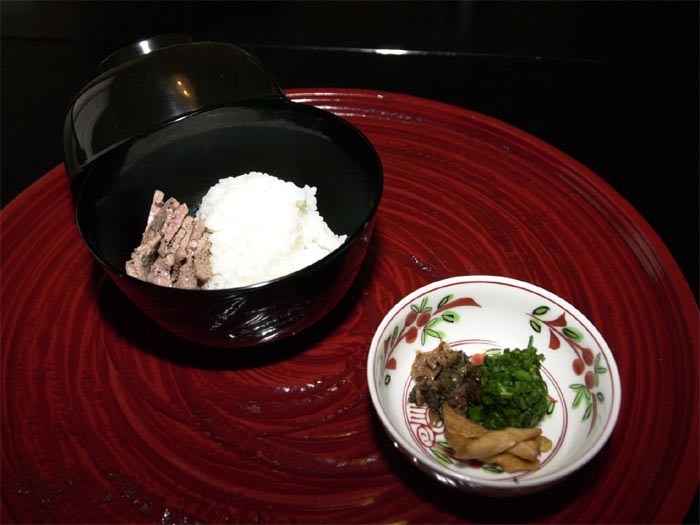 利休形四ツ椀 飯 ヒレステーキ添え 香の物 |