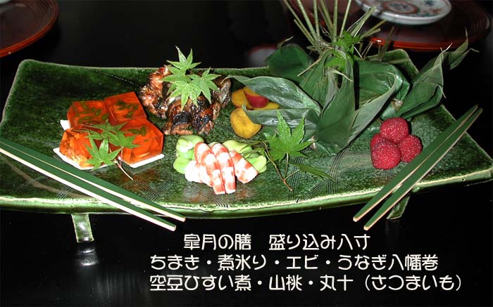 | 肝煮氷り | 車エビ | うなぎ八幡巻・丸十 | 山桃 | ちまき 赤飯・寿司 |