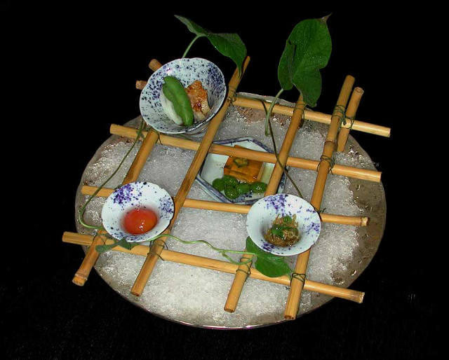 じゃこ青唐、トマトシロップ煮,合鴨ロース,枝豆、