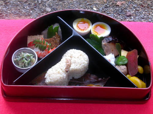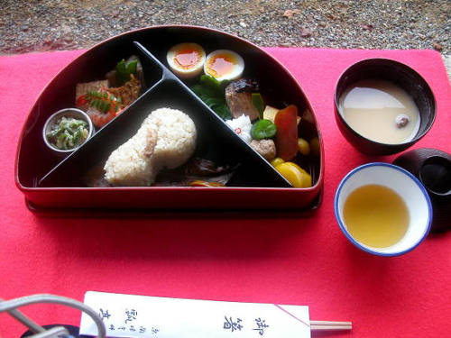 瓢亭さんが何時もお作りになる半月弁当 それにお味噌汁。