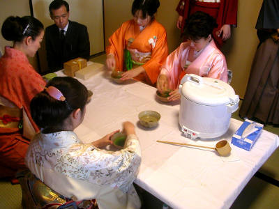 膳が出ると亭主は燗鍋を持って茶席に出ますそして、挨拶をしながら
