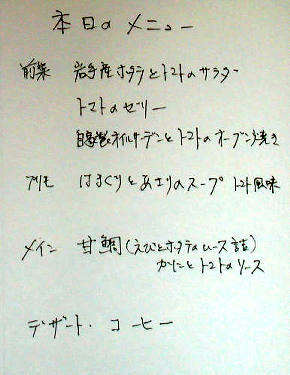 またトマトをメインに献立お願いしま〜〜す。っと電話を入れました。