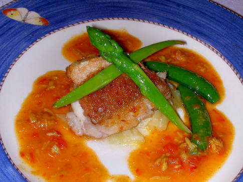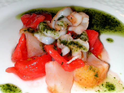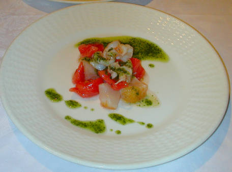 えびとほたてのムースがマッタリトシテ、トマトのソース、