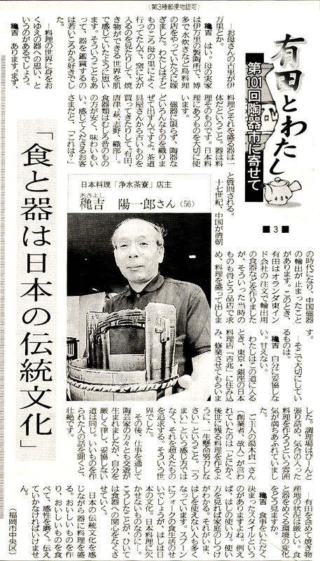 母の実家は伊万里の製陶所で、博多で水炊きなど鳥料理の店をやっていた父に嫁ぎました。
