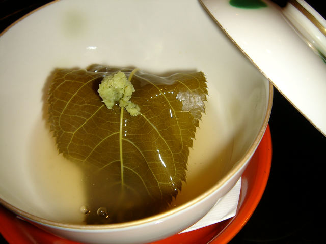 桜の蕾も入った愉しいお椀、帆立真蒸の出来は秀逸!