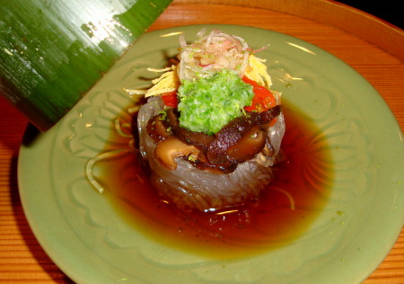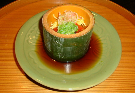 な、何と、、、清涼感溢れる竹筒に入ったものは? 葛きり麺!!!