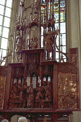 教会の中にあった木彫の祭壇。16世紀の有名なマイスターの作。
