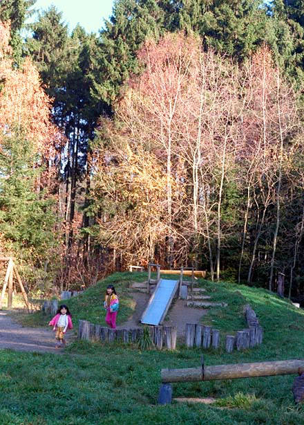 森の中にはピクニックやキャンプ用の広場が設けられています。ある秋の日ピク