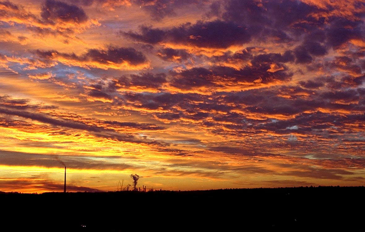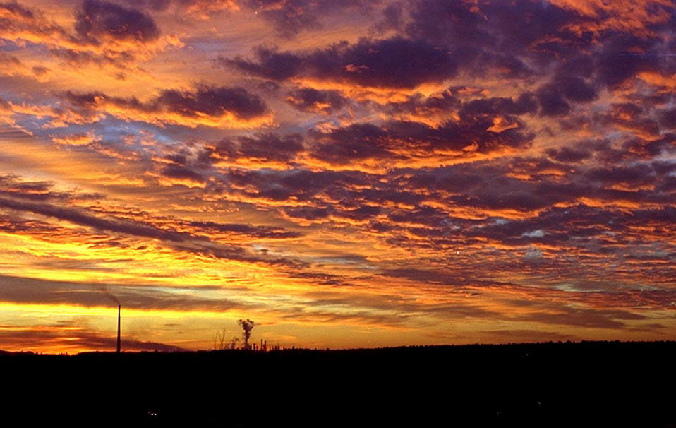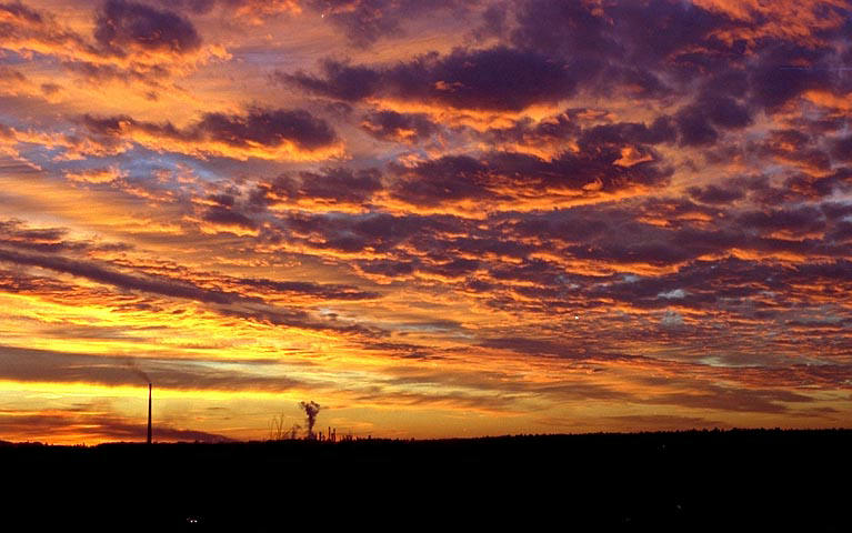最後にお見せするのはドイツの秋の空です。金色の雲と赤紫の雲とまだ残る青