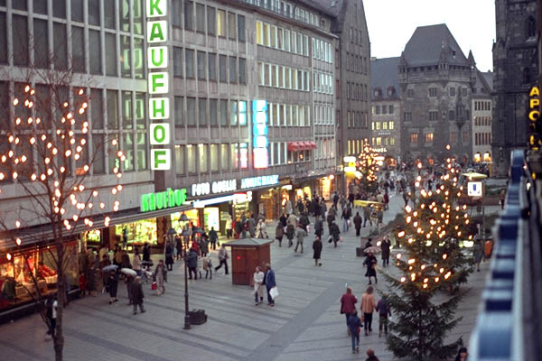 クリスマス用品専門店がクリスマスに閉まっているのも妙な話ですが、日曜祭日、福岡天神は買い物客で溢れているのに対し、ドイツの都心はガラーンとして人影がありません。今はだいぶん緩和されましたが私達が初めてドイツに住んだ頃はデパートも専門店も店舗閉店法のおかげで平日は午後6時に、土曜日は午後1時にピタッと閉まり、月に1回午後5時まで開いている土曜日があるにはありましたが、不便でなりませんでした。また、こういうこともありました。北ドイツを旅行し、ミュンヘンに帰ってきたときのことです。ドイツ鉄道は自動車を鉄道で運ぶサービスをしています。ハンブルクで夕食を終えてから愛車を専用貨車に載せ、私たちは寝台車で眠って翌朝ミュンヘンに着きました。スーパーで食料を買って帰って家で食事をしようと思ったところ、なんとどこも閉まっています。この日はカトリックの多いバイエルン州は祭日だったのです。プロテスタントの多い北ドイツにいる間はそれに気付きませんでした。仕方なくミュンヘン中央駅に行って旅行者用の店であり合わせの食べ物を買い、ちょっとわびしい食事で一日が終えました。そういう不便なこともありましたが、しかし慣れれば結構豊かな生活が送れることに気付きます。用事は昼休みや退社後の短時間に手際よく済ませ、日祭日は自宅か郊外でゆっくり休日を楽しむのです。