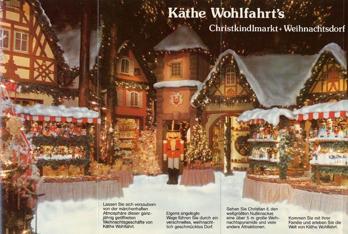 上の写真は店の案内パンフレットですが、年がら年中こんな調子でクリスマスをやっています。でもYokoさんがそうだったように、肝心なクリスマスの日には閉店しています。なぜって、、ドイツには店舗閉店法という法律があり、労働者保護とキリスト教の教えから日曜、祝祭日には閉店することが義務づけられているからです。