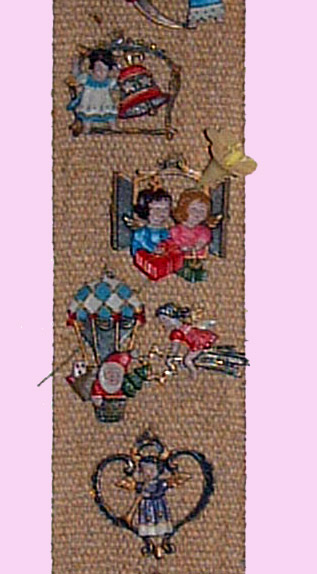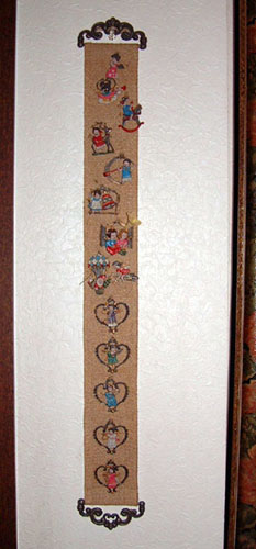 こんな壁飾りもあります。厚手の麻布に鉛の人形を縫いつけたもの。拡大すると、、