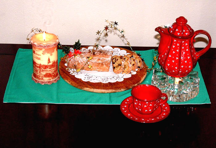 クリスマス・シーズンにはいろいろなお菓子が店先に並び、家庭でも作られます。シュトーレンはその代表的なものです。パン生地に近いケーキ生地の中にリキュール漬けしたドライフルーツを入れ、三枚にたたんで焼き、焼き上がったら粉砂糖をふりかけて2〜4週間室温に放置しておきます。ドライフルーツの味がケーキにしみ込み、しっとりと堅くなった頃食べます。最近日本でも売り出しました。ドイツに注文して取り寄せることもできます。