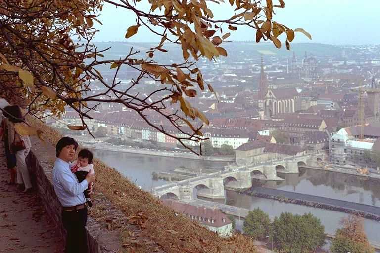 さて、ヴュルツブルクの場合この付加価値とは何であったろうか。マリエンベルク要塞から見下ろすヴュルツブルクの町はここから400km東にあるボヘミアの首都プラハとよく似ている。褐色とベイジュのの砂岩で出来た建物の並ぶヴュルツブルクの町は百の塔と教会の町と謳われたプラハを小さくしたようである。ここヴュルツブルクは今日でも人口わずか13万人の小都市であるにもかかわらず40もの教会があるのは驚嘆に値する。ここから見下ろす旧マイン橋とモルダウ川に架かるプラハのカレル橋と、石を素材にした造形美が似ているのは単なる偶然ではない。西欧の海洋性気候の世界ともウクライナ以東のスラブ系民族の世界とも異なる中欧の概念が、文化史上も民族学的にも地勢学的にも気象学的にも存在することを理解することは、第二次世界大戦以前のヨーロッパに於いては自明のことであったが、政治がヨーロッパを東と西に人為的に分けたことにより、この理解は一時的に困難になっていた。しかし1989年に鉄のカーテンがなくなった今日、中欧の概念を理解することは再びさほど難しいことではなくなった。プラハとヴュルツブルクの景観の類似性は同じ乾いた空気を吸い、生活に同じ素材を使い、同じような食生活をする地域で民族を越えた文化の融合があることを示している。