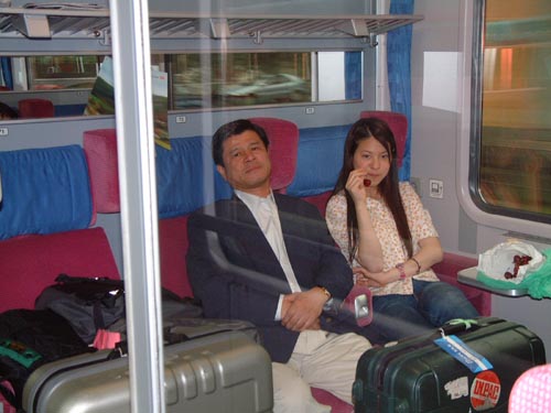 日本にはないコンパートメント・カーを予約して,一室6人で楽しいおしゃべり