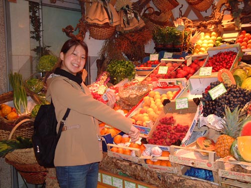 Mp05: 果物屋の店頭.ラズベリー,黒いチェリーなど.