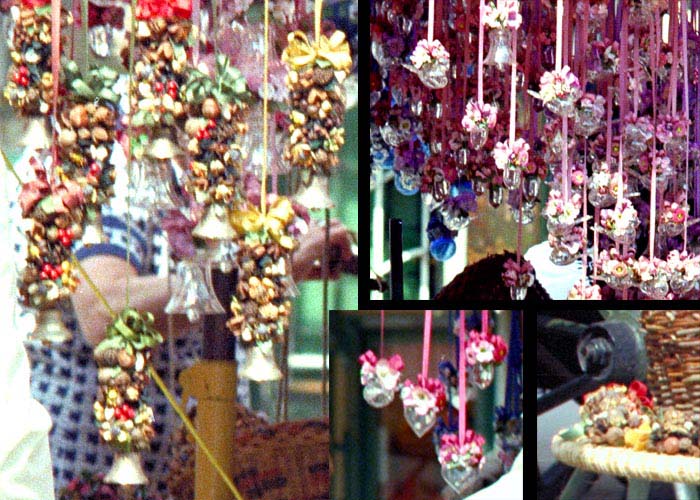ザルツブルク風ドライフラワーの店。木の実類やストローと組み合わせて可愛い壁掛けやクリスマスの