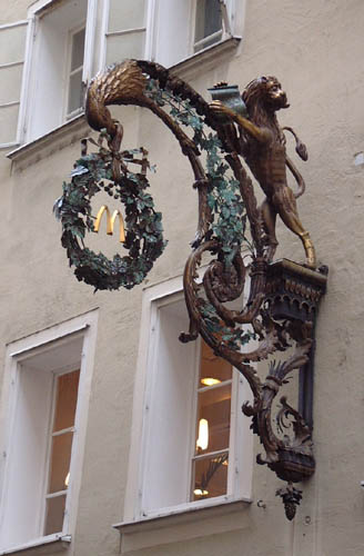 穀物小路ではハンバーガーのマクドナルドも、ご当地のカラーに自ら染まります。