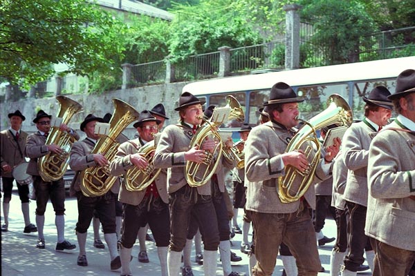 やっぱりこの一団も民族衣装で決めている。あのフェルト帽、グレイのジャケットにあの革ズボン、、