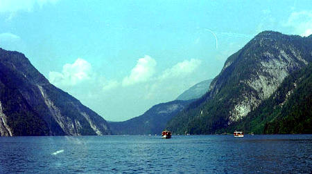その中央に南北に細長い湖があります。実はこのクーニッヒ湖(邦比古デハナイ Ko"nigsee)が「サウンド・オブ・ミュージック」