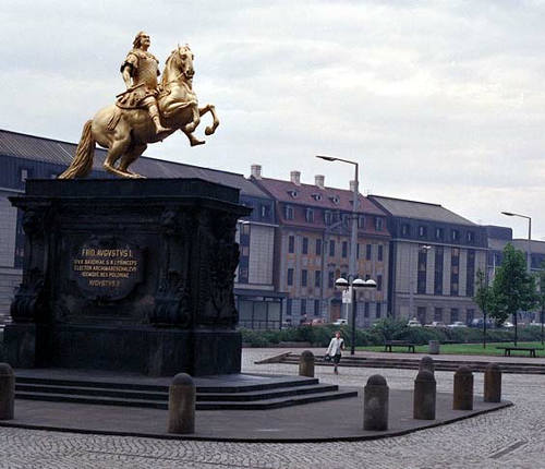 に、高さ3mは超えようかという大きな金色に輝くアウグスト強王の騎馬像が、新市街の