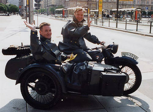 広場にクラシカルな装いのサイドカーが停まっていた。黒く塗られ、乗っていた二人の