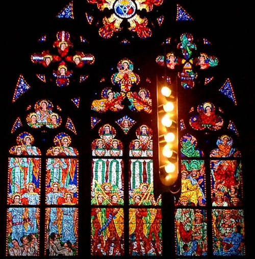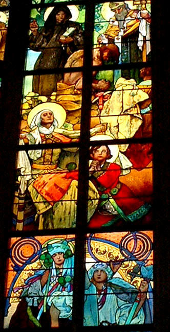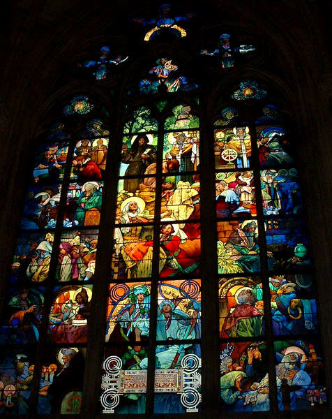 ステンドグラスの美しいこと!息をのみます.右の2枚はミュシャ作と,