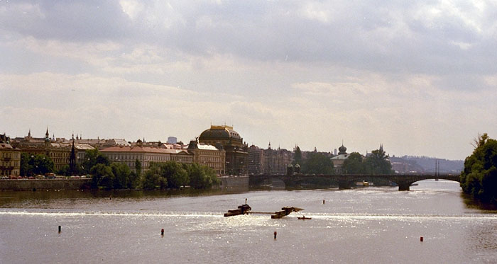 カレル橋から見たモルダウ(ヴルタヴァ)川上流と国民劇場です.実はこれは15年前
