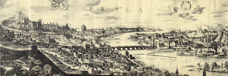 こうなります.15世紀か16世紀の銅版画です.中央にカレル橋,左手に城壁に囲まれ