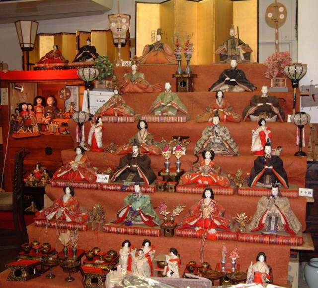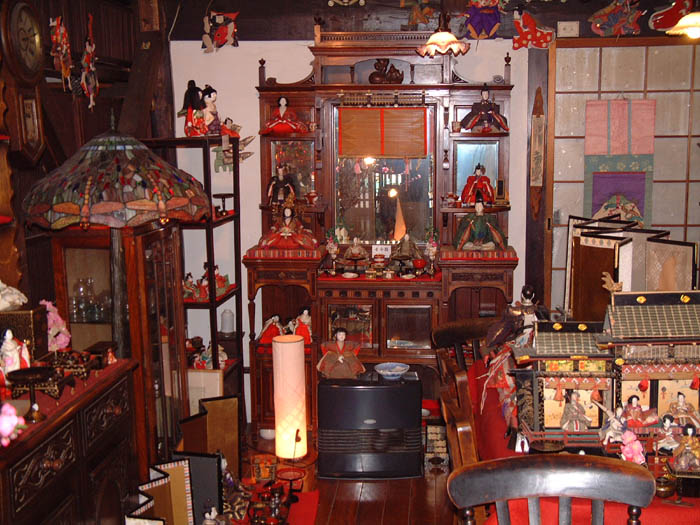 中では骨董屋さんもこの時期は雛人形を飾っている.展示の入れ替えは大変な作