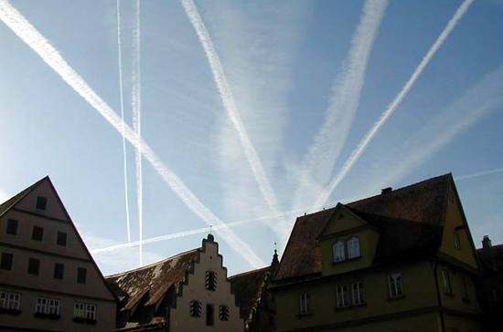 (ドイツではいつも澄んだ空に、飛行機雲が見える)