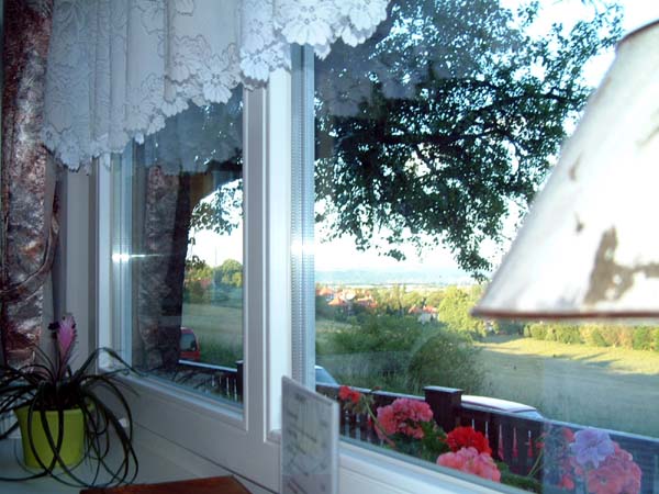 手作りケーキと美味しい食事があなたをカフェへ誘います。晴れた日にはチェコ共和国 の山並みと上エルベ渓谷まで見渡せる抜群の眺望。カイツバッハ渓谷を散策するも良 く、一杯のコーヒーはあなたを日々の緊張から解放することでしょう。当カフェは外観内 装とも1912年開店当時の姿が良く保たれています。椅子のクロスは何度張り替えらた ことでしょう。テーブルや食器棚も当時のオリジナルがまだ大切に使われています。 (中略)・・・社会主義による受難の時代を生き延びた当カフェは大々的に補修され、 1998年リニューアル・オープンしました。