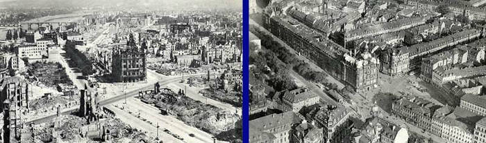 た。爆撃は10時間に及び、ドレスデン旧市街は建物の壁だけを残す廃墟となり、一般市民の犠