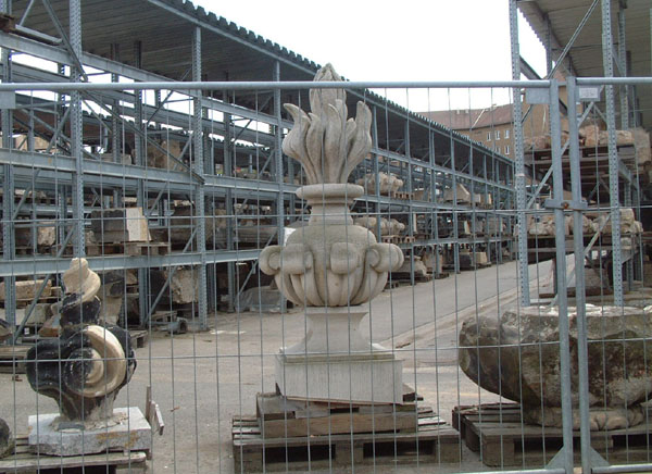 小山を成していた聖母教会の瓦礫は、見えている石塊に全て番号札が張られ、石塊と石塊の