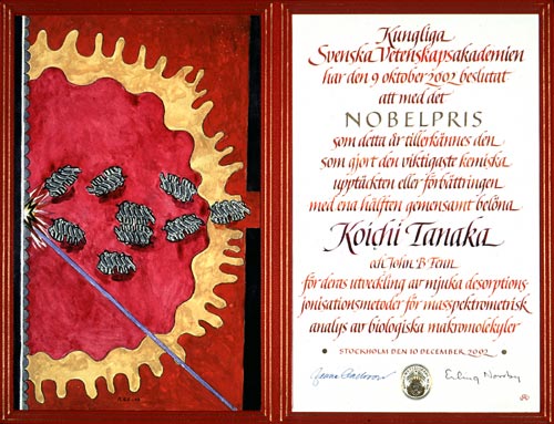 (田中さんのノーベル化学賞賞状。ノーベル財団サイトより転載)