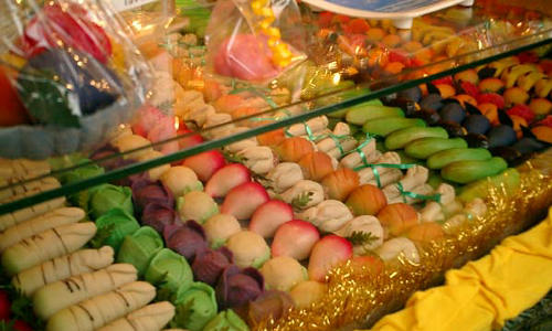 このお店はマジパン。アーモンドの粉で作ったお菓子。