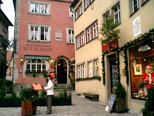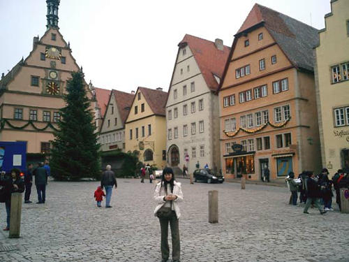 やって来ましたローテンブルク。でも市庁舎前広場は拍子抜けするぐらい簡素で,クリスマス・ツリーが一本あるだけ。