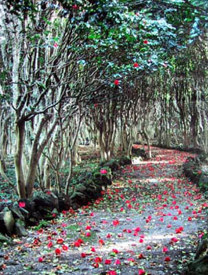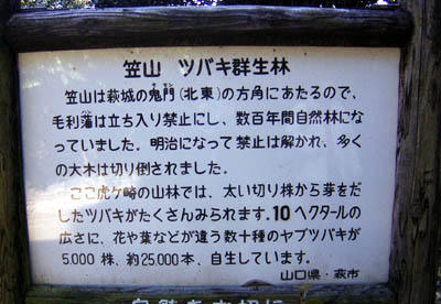 萩市の笠山ツバキ群生林。 笠山は海に突き出た標高112bの小火山です。