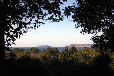 原生林から日本海を望む。