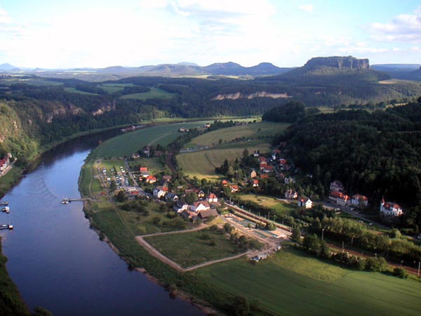 エルベ川をチェコの方に上った風光明媚な地方を<ザクセンのスイス>と呼ぶ。遠方に砂岩の台地が見える。