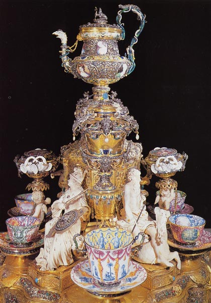 ザクセン候家宝物室所蔵,マイセン磁器,金箔,宝石で作られた茶器セット