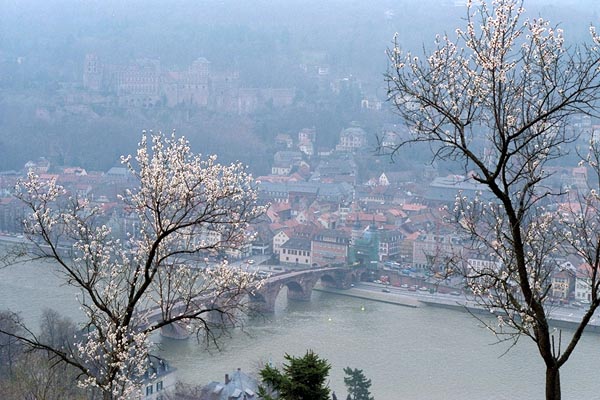 古城と橋を対岸の丘の上、「哲学者の道」から見下ろしたところ。