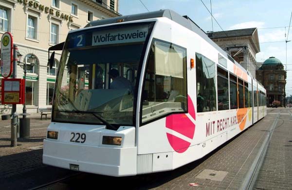 カールスルーエの市電(トラム)も有名。市電が直接ドイツ鉄道に乗り入れて近郊電車となっているのはここだけです。
