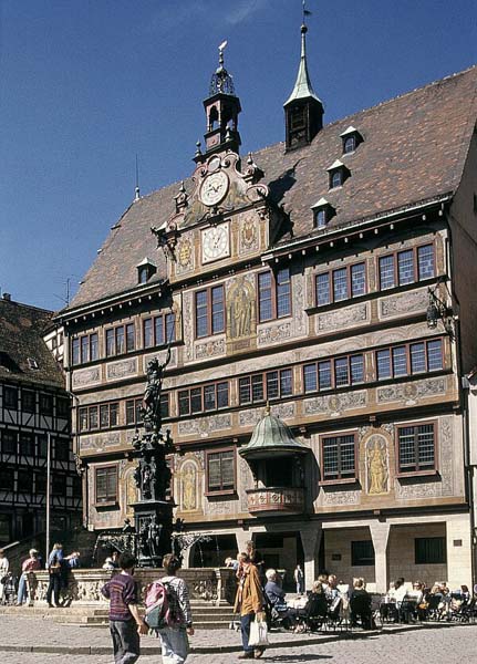 シュツットガルトからネッカー川をさらに30kmほど遡ったところにあるのが、小さな大学都市テュービンゲンです。これは市庁舎。
