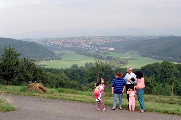 いつもの散歩道。谷の中央をネッカー川が流れています。向こうの高台の集落を見下ろしながら