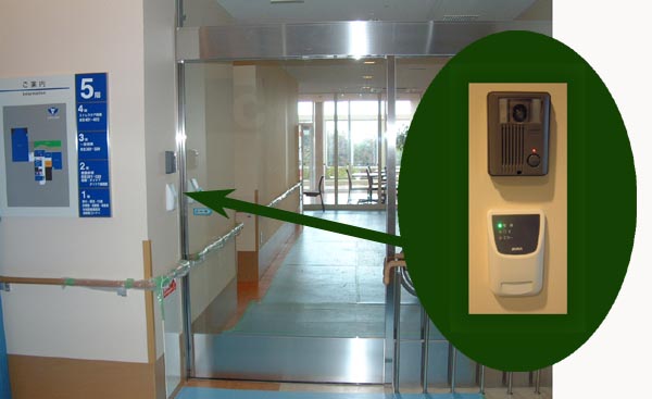 しかしここならでの装置が付いています。上はテレビカメラ。下は非接触型カード鍵です。クレジットカード様のカードをここに