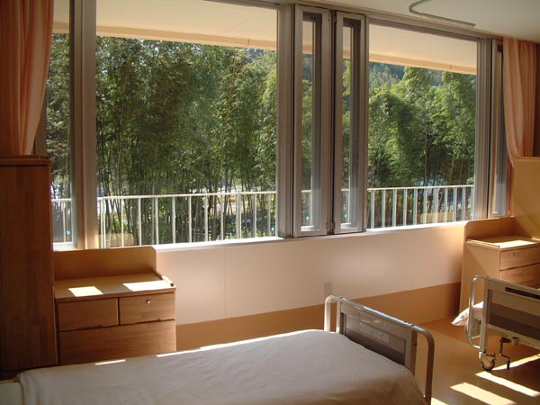 5階は特に明るいフロアです。今回病院を取り巻く環境にも賛辞を頂戴しました。南に竹林、西に桜の丘、北に・・