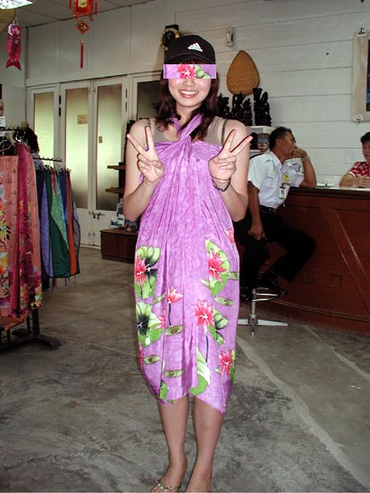 ホテルで一緒だった女の子がバティクを試着していた。
