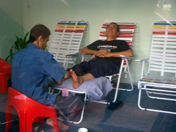 足裏マッサージ。歩き回った後だから