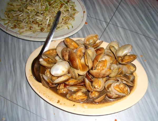アサリのような二枚貝と、もやし